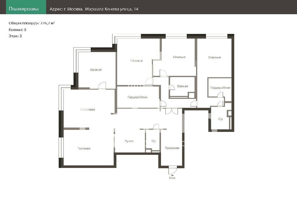 ID 24686 Предлагается квартира 226,2 кв.м. без отделки в ЖК Бирюзова.